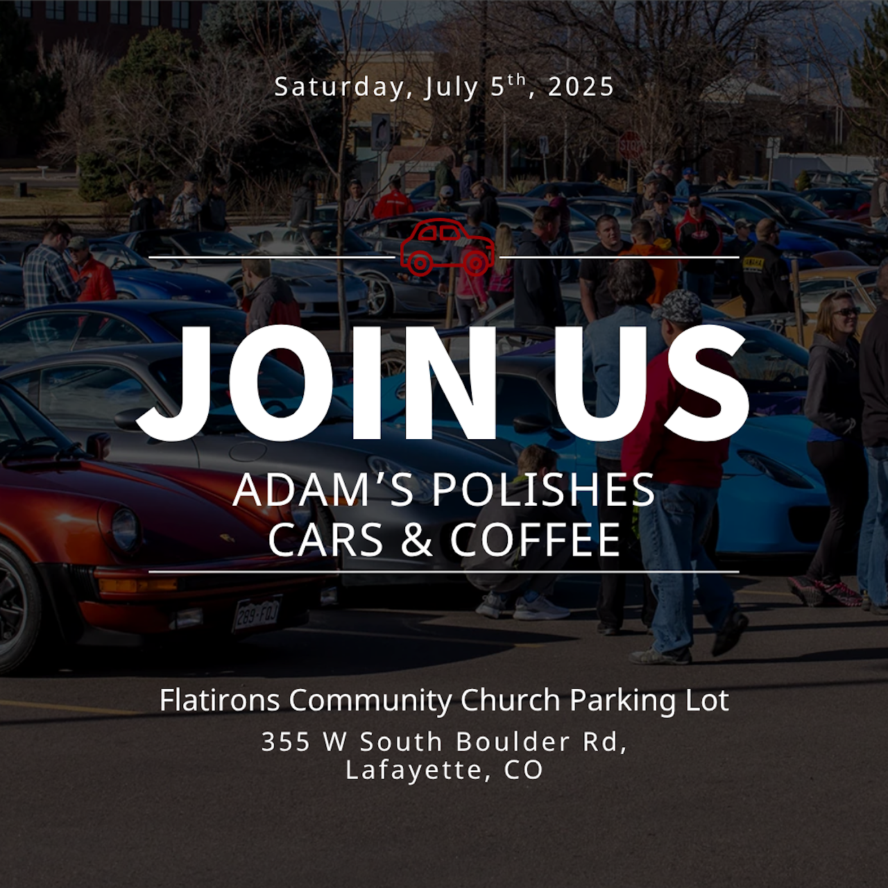Come see us at Adam's Polishes, Cars and Coffee on Saturday, July 5th, 2025 in the Flatorns Community Church Parking Lot!