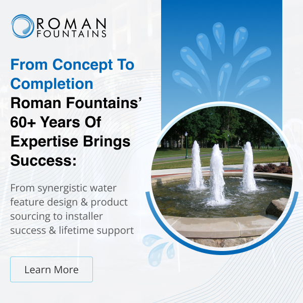 Roman Fountains is an innovative leader in the water feature industry. With over 60 years of trusted fountain expertise, we offer complete services including: fountain design, equipment supply, and field support. Projects range from traditional architectural-style fountains to interactive splash pads to cutting-edge show features. We offer an extensive line of quality fountain products and pride ourselves in excellent customer service.