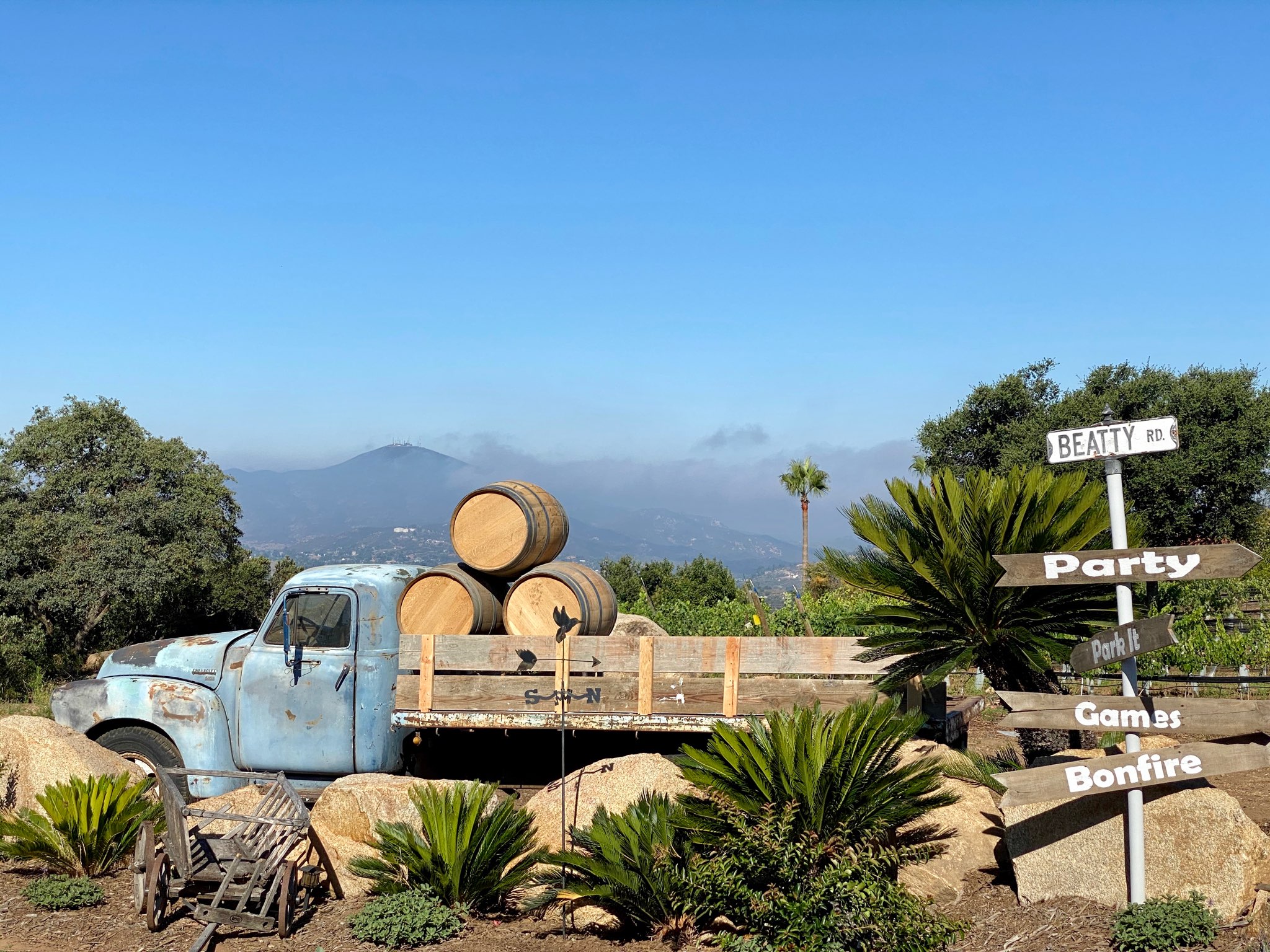 San Diego's closest winery. Just a quick escape from the city, our award-winning winery offers a truly unforgettable experience. Recognized by the San Diego Union-Tribune, San Diego Magazine, and San Diego Reader, we invite you to indulge in breathtaking views, exceptional wines, and warm hospitality. Meet owners Rusty and Kerri, that welcome you to this home away from home. Relax on our terrace, surrounded by the beauty of mountains, ocean and city views. Cozy up by a fire pit on cooler evenings or enjoy our indoor air conditioning and misters on the terrace during the summer. Whether you're planning a romantic getaway, a gathering with friends, or a special occasion, we're here to make your visit unforgettable. Walk-ins welcome.