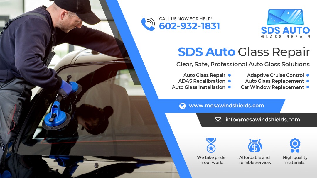 SDS Auto Glass Repair delivers dependable auto glass replacement and repair services throughout Mesa, AZ, backed by 20+ years of hands-on experience and a commitment to quality craftsmanship. Our licensed and insured team works with trusted manufacturers to ensure every windshield, rear glass, and vehicle window meets high standards for safety and durability. With mobile service available across the area, we make it easy to get fast, reliable repairs wherever you are. Connect with us today to schedule service or request a quote.