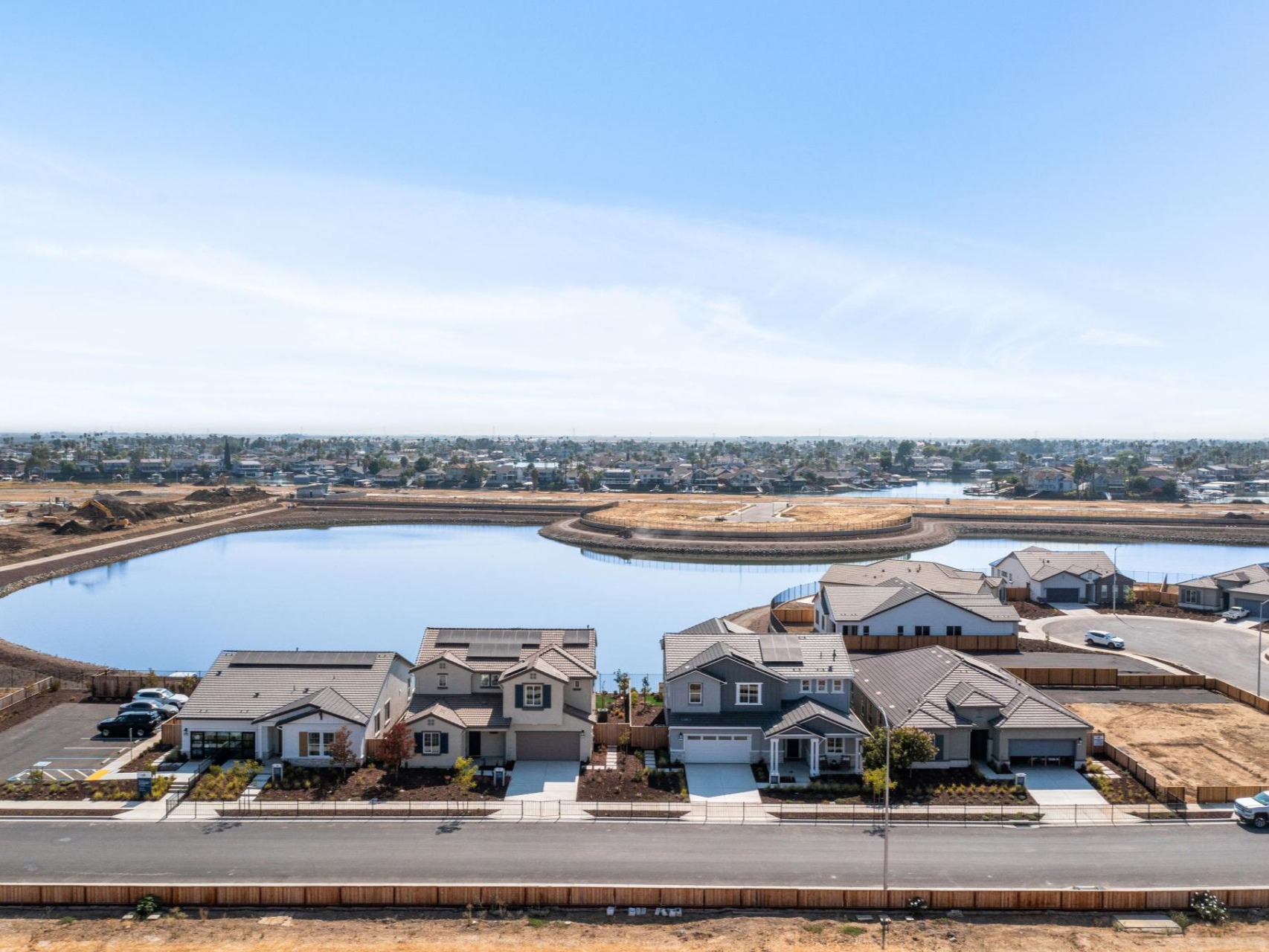 Aerial view of waterfront homesites at Seagrass by Pulte Homes in Discovery Bay, California
