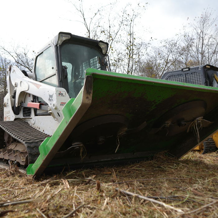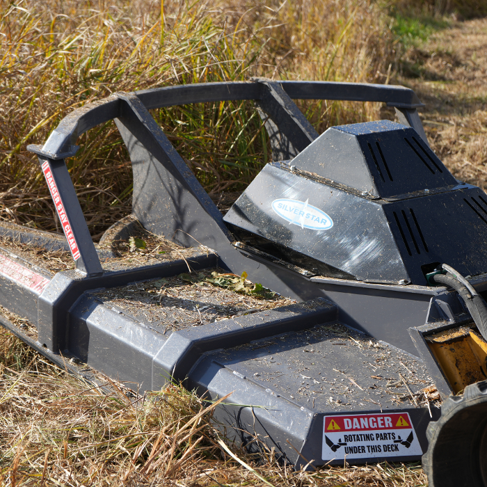 Heavy-duty single-rotor brush cutter designed for tougher vegetation. Cuts through thick brush efficiently with superior skid steer performance.