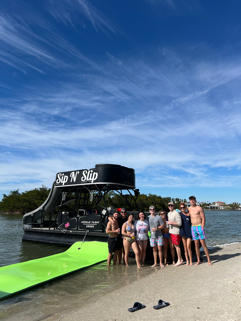 Sip N’ Slip Tours in Sarasota, FL offers unforgettable Boat Tours, private Boat Charter options, and customizable Boat Cruise experiences on Sarasota Bay and Siesta Key. Book a Private Boat Tour for dolphin sightings on a Dolphin Tour, sunset cruising, or a Sandbar Boat Tour with swimming and island stops. Choose a Snorkeling Boat Tour, Family Boat Tour, or a Boat Tour For Kids—plus fun Bachelorette Boat Cruise celebrations on our custom party boat featuring a waterslide and floating trampoline. Flexible itineraries, BYOB, and USCG-licensed captains available.