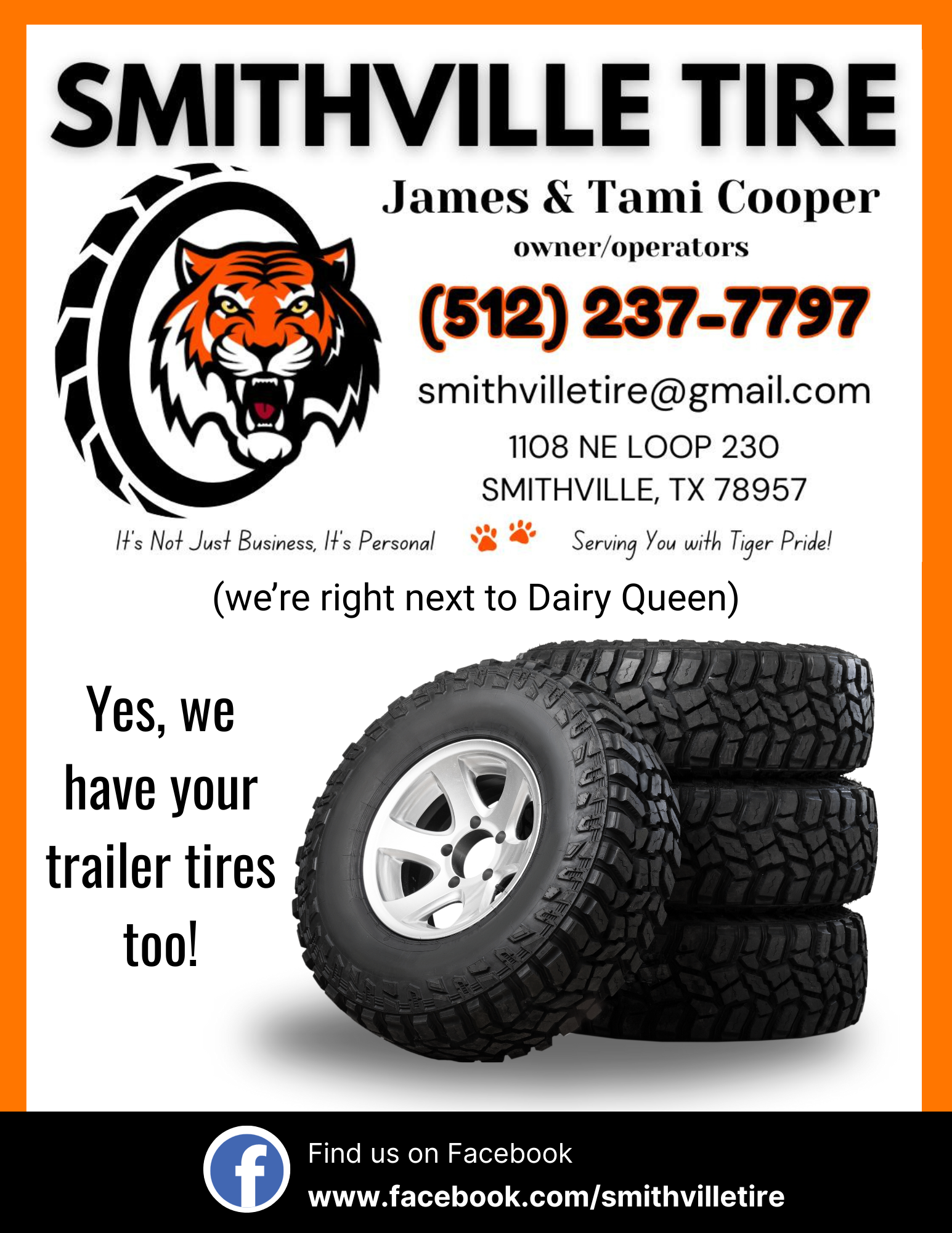 | Services | tire repair, tire pressure checks, vehicle safety inspections, tire sales, tire rotation, mud tire sales, performance tire upgrades, tire balancing, highway tire brands, seasonal tire change, flat tire repair, budget tire options, all-terrain tire sales, tire tread inspection, off-road tire solutions, small tire shop consultation, truck tire service |