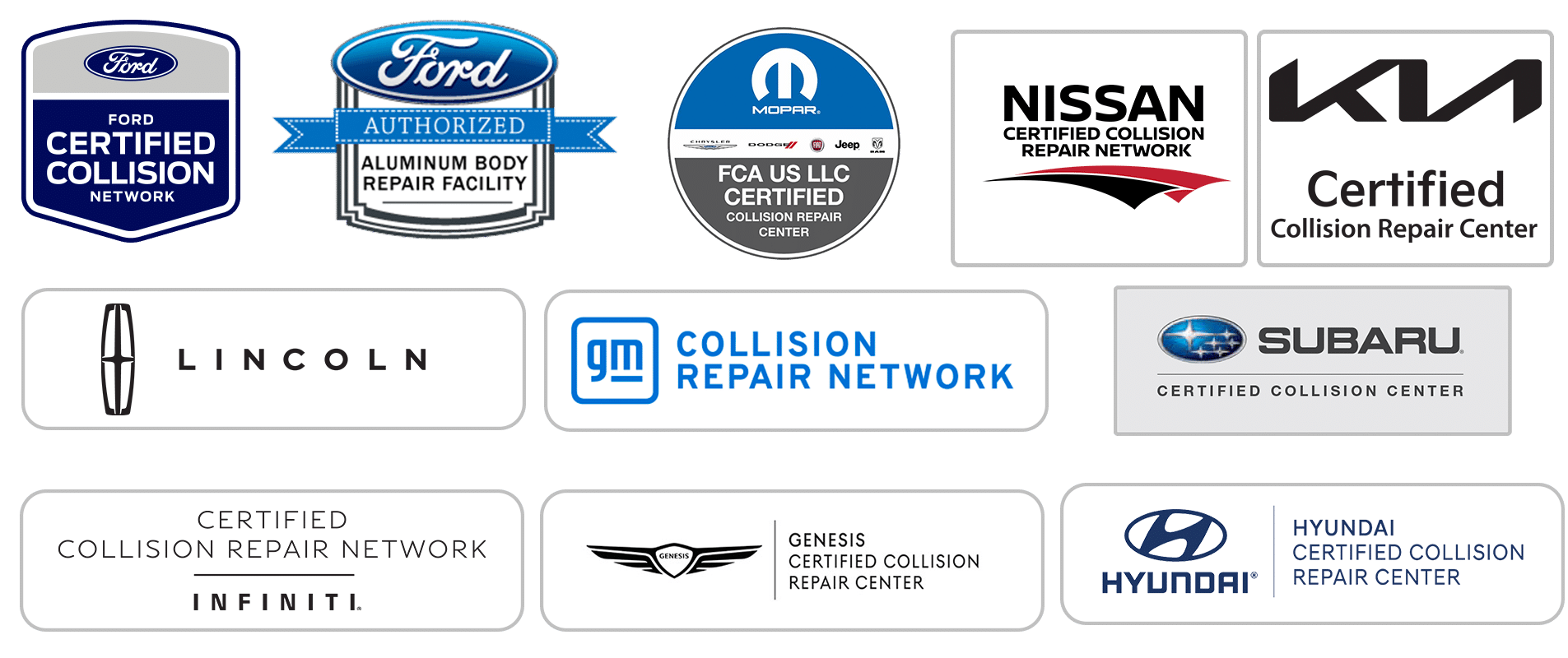 | Brands | Ford, Chrysler, Jeep, Fiat, Nissan, Kia, Lincoln, GM, Subaru, Infiniti, Genesis, Hyundai |