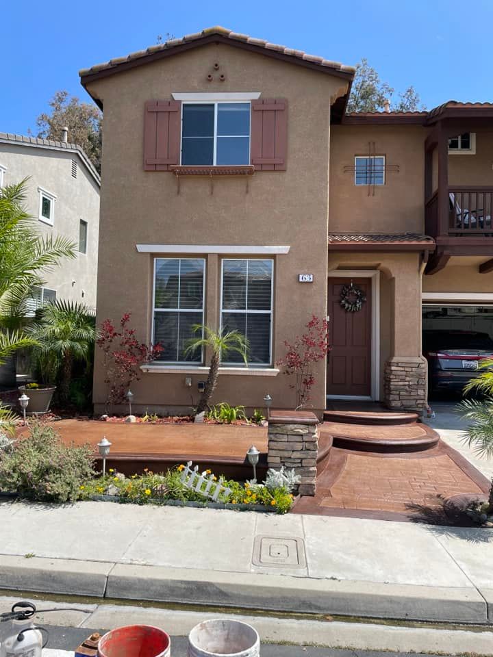 Staincrete Creationz provides quarter-inch stampable overlays, custom concrete staining, imitation flagstone & slate coating, eighth-inch concrete feather finishes, man-made rock restoration services to the Orange County, CA area.