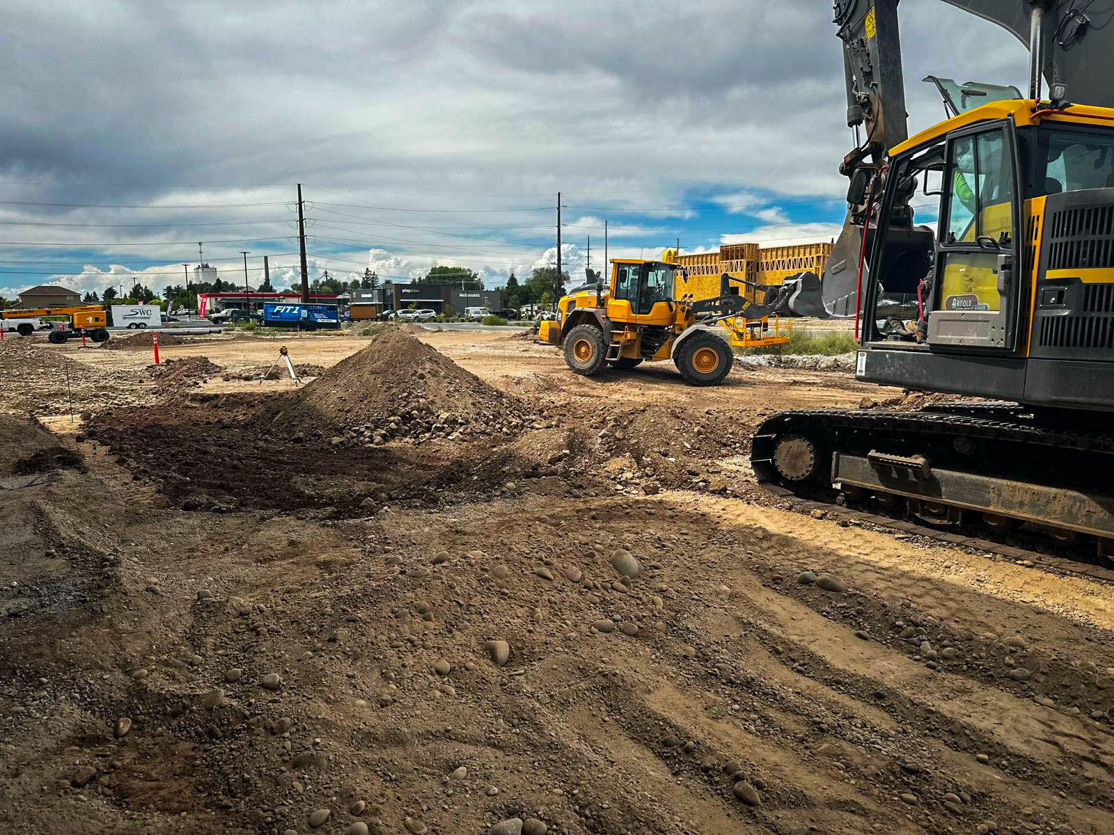 This image captures the initial phase of construction for the Fit One project. Our team is on-site with heavy machinery, performing critical earthwork, grading, and excavation to prepare the ground for the building's foundation. This foundational step is essential for the structural integrity of the commercial steel building and marks the official start of another successful project managed by Steel Concept Inc.
