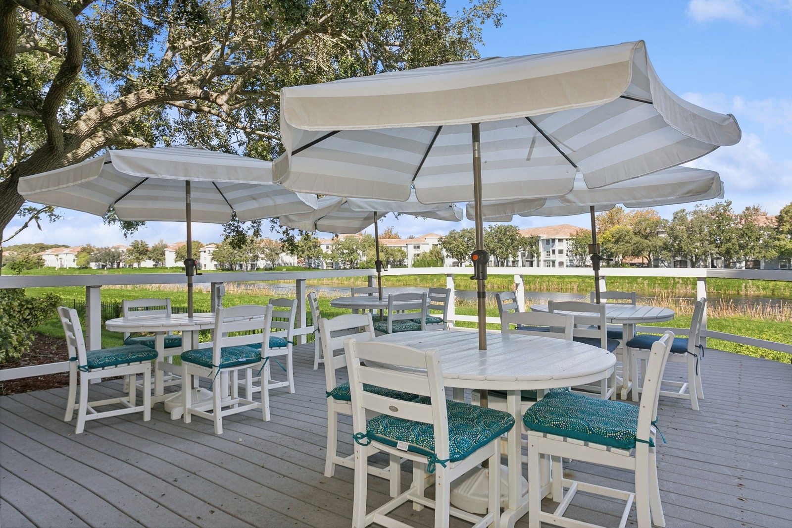 Stratford Court of Palm Harbor deck with tables and chairs