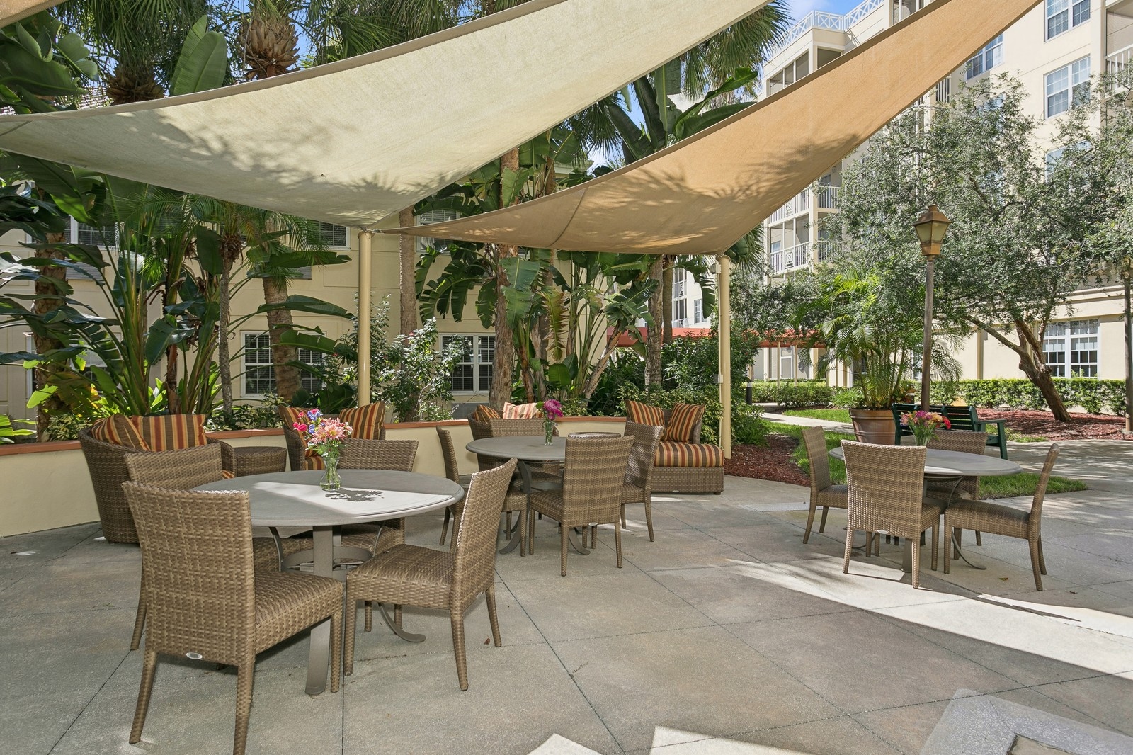 Stratford Court of Palm Harbor patio with tables and chairs