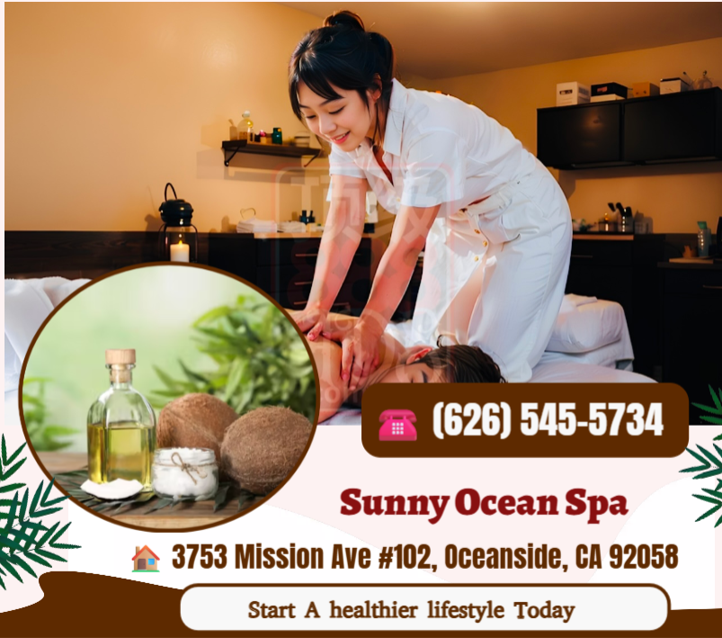 Welcome to Sunny Ocean Spa, your tranquil oasis in Oceanside, CA. Step into a world of relaxation and rejuvenation at our premier massage spa. Our skilled therapists offer a variety of massage treatments to help you unwind and melt away the stresses of daily life. Whether you seek relief from muscle tension or simply desire a pampering session, Sunny Ocean Spa is dedicated to providing exceptional service in a serene environment.