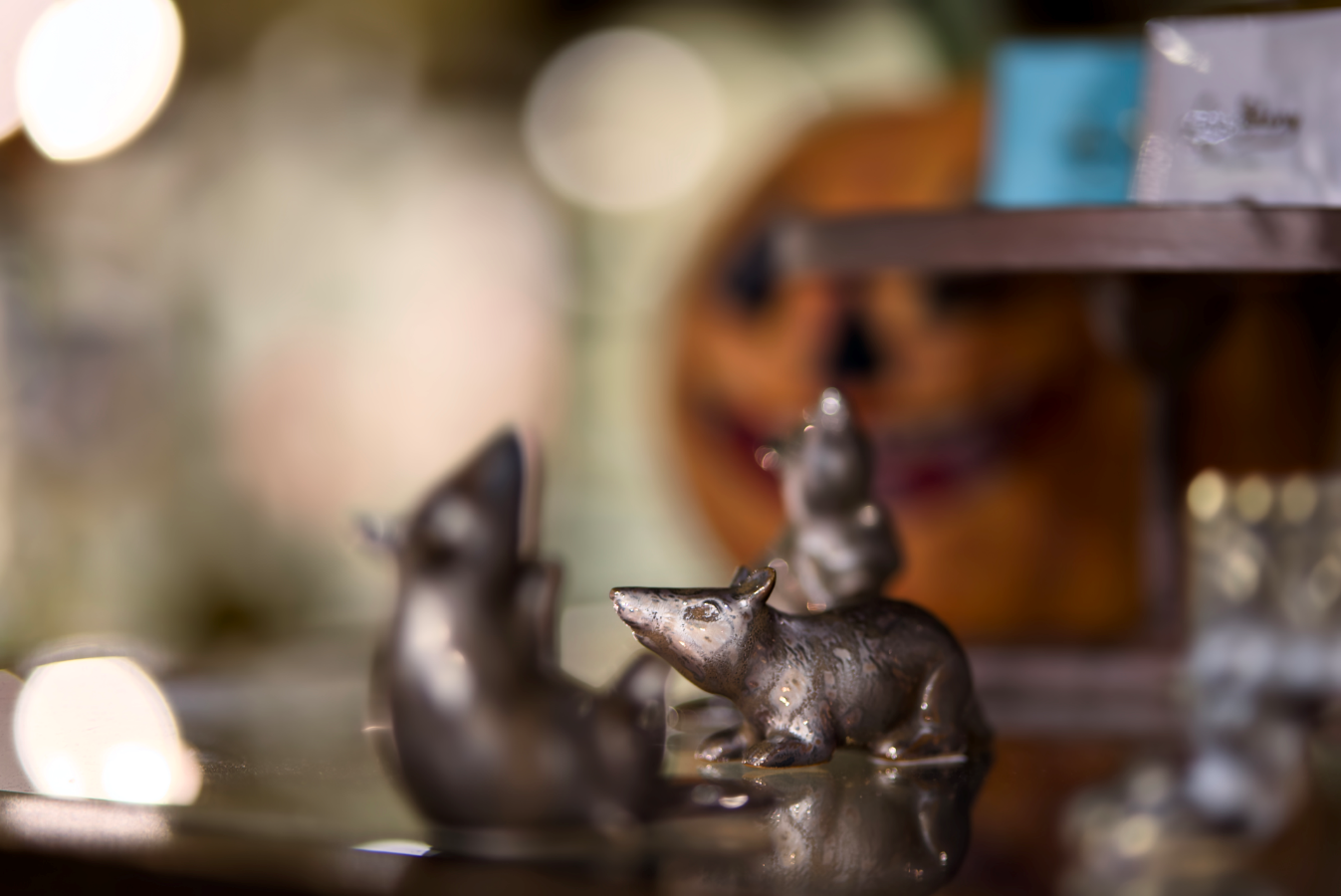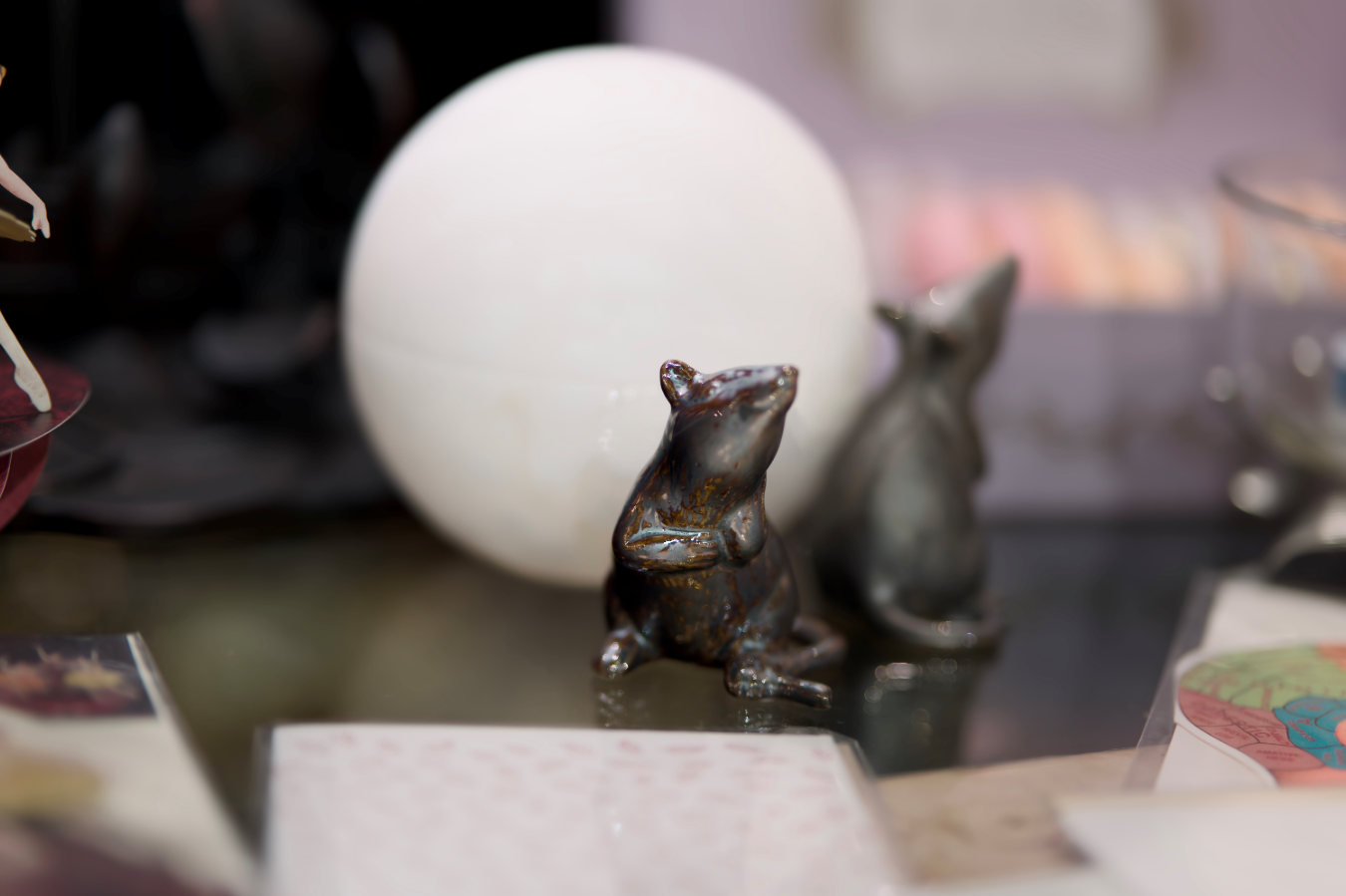 Add a touch of charming mischief to your Halloween display with these artistic figurines. This detailed rat sculpture, with its rich metallic finish and whimsical expression, offers a sophisticated nod to the spooky season. Perfect for a mantelpiece, bookshelf, or an elegant tablescape, these pieces bring an unexpected and artful element to your décor. Find unique seasonal accents at Tabula Rasa Social Stationers.