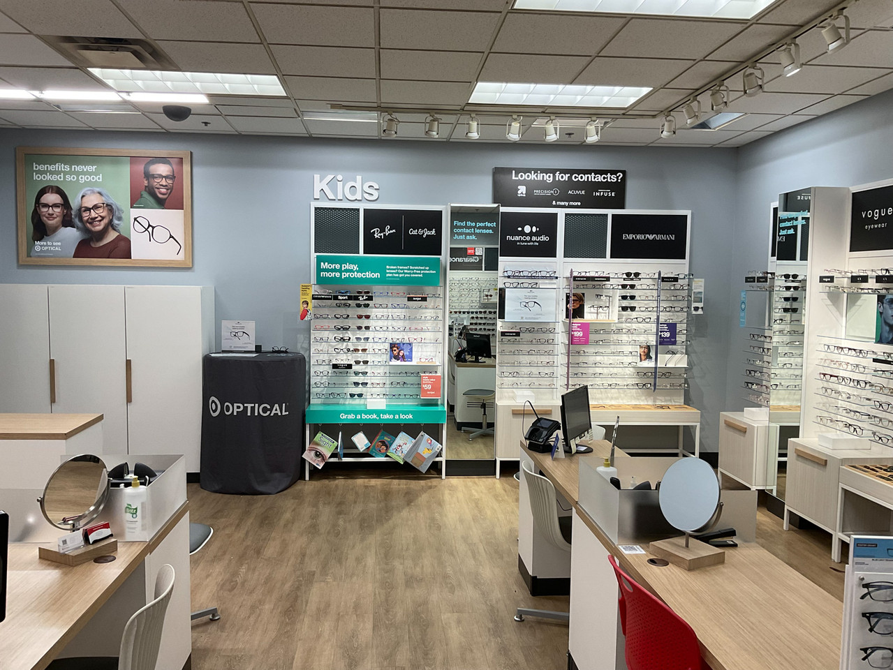 We make eye care easy at Wyomissing Target Optical, located at 2769 Paper Mill Rd. Get quality eye care, stylish frames, and great savings. We accept major insurance plans for a hassle-free experience. Shop top brands like Ray-Ban, Coach, and Oakley, plus Target favorites like A&A and Cat & Jack. Pair frames with specialty lenses or choose top contact lens brands. Enjoy our 90-day guarantee. Schedule an eye exam today with our Independent Doctors of Optometry.