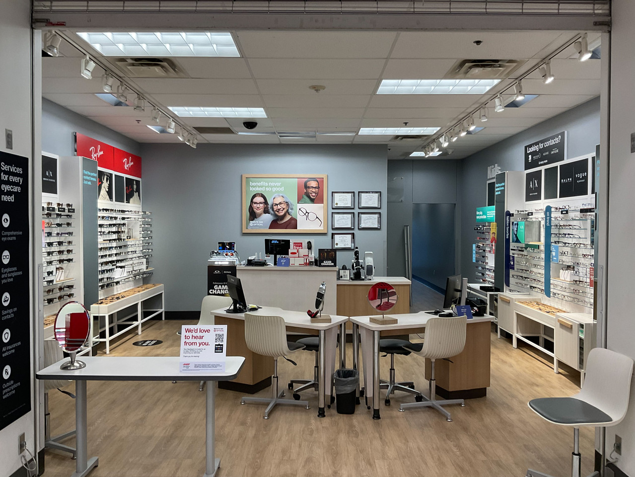We make eye care easy at Concord Target Optical, located at 6150 Bayfield Parkway. Get quality eye care, stylish frames, and great savings. We accept major insurance plans for a hassle-free experience. Shop top brands like Ray-Ban, Coach, and Oakley, plus Target favorites like A&A and Cat & Jack. Pair frames with specialty lenses or choose top contact lens brands. Enjoy our 90-day guarantee. Schedule an eye exam today with our Independent Doctors of Optometry.