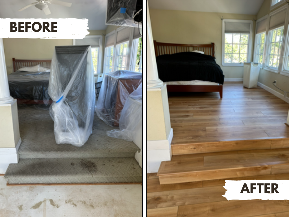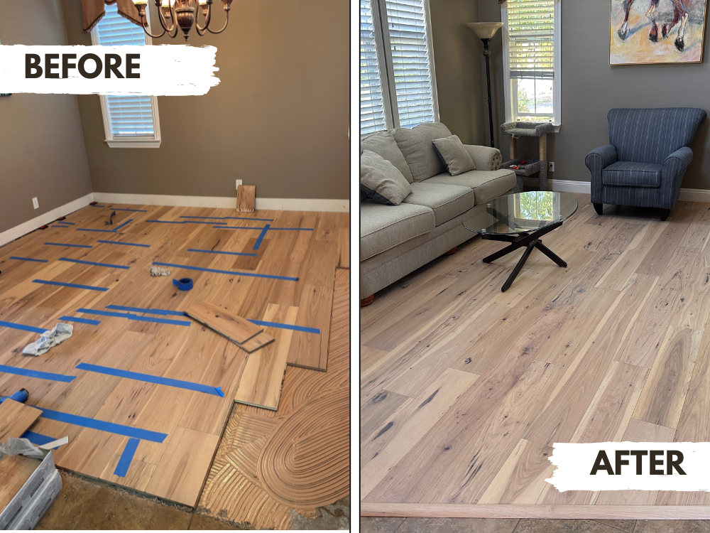 This before-and-after hardwood flooring project shows how The Floor Store Outlet’s expert installation brings warmth, elegance, and value to any living space.