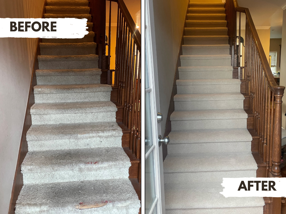 A dramatic before-and-after transformation featuring hardwood stair installation by The Floor Store Outlet. See how professional craftsmanship and premium materials can elevate any home.
