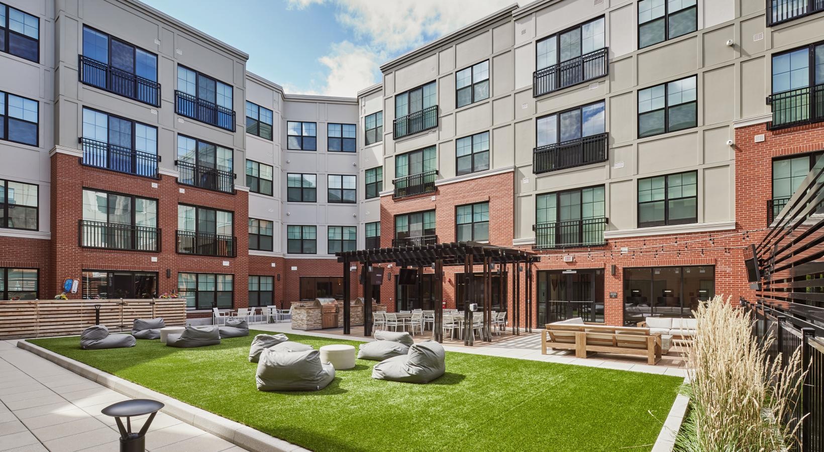 | Services | Fitness center with Precor gym equipment, Yoga and spin studios, Co-working lounge with reservable private offices, Lobby lounge with double-sided fireplace and seating, Clubroom with billiards, shuffleboard and terrace access, Reservable kitchen with warming drawers, Pet grooming spa, Secure package management, ButterflyMX® smartphone video intercom system, Complimentary bike storage, Professionally managed urban beehives, Bilt Rewards: Earn rewards points with every rent payment, Sustainability and wellness, Berkshire Resident App, Vinyl wood plank flooring, In-unit Whirlpool® washers and dryers, Custom modular closets, 9’ ceilings with oversized windows* and built-in sunshades, Hillside views *, Private juliette balconies, patios or terraces *, Quartz countertops, Energy Star® stainless steel appliances, Gas stovetops and ovens, Full-height tile backsplashes, Kitchen island seating *, Shower stalls with full-height tile wet walls, Moen® fixtures |