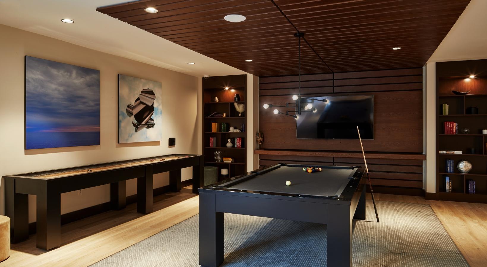 Clubroom with billiards, shuffleboard and terrace access