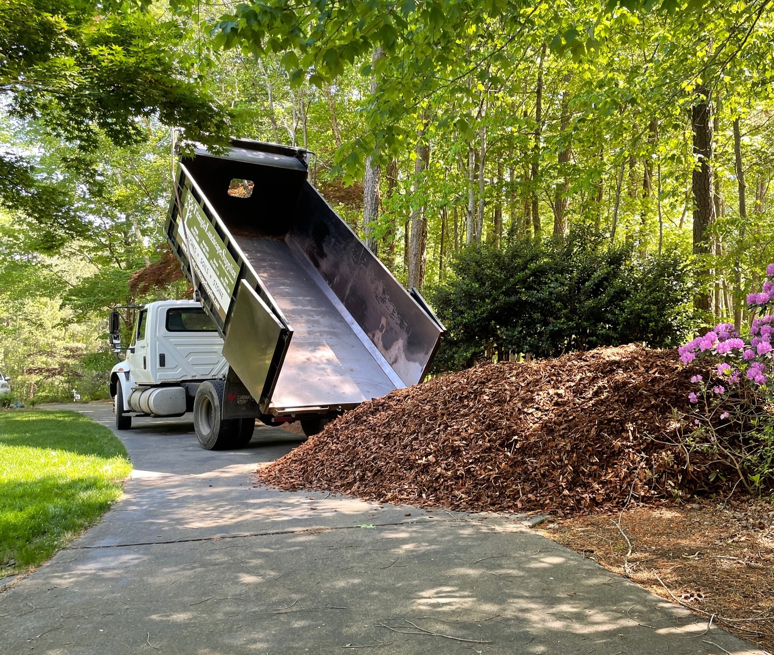 Fresh Mulch delivered (and installed if you would like) to you instead of buying bagged mulch. You may also come by and pick up mulch or landscape materials anytime or again we can deliver at any of our landscape mulch near me.