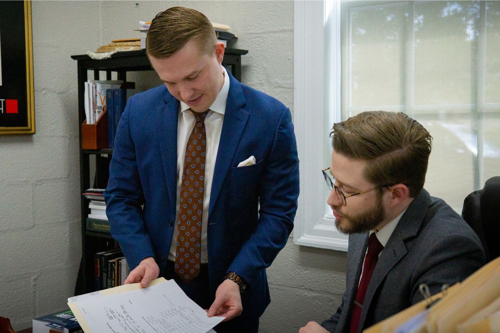 Nick and Calum Welch Reviewing a dui case file