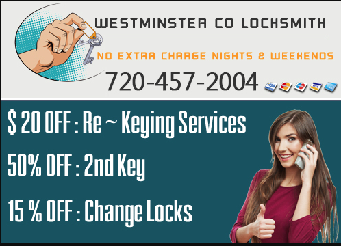 At Westminster Locksmith CO, you can give us a call any time for your auto, residential, and or commercial locksmith issues to be at your service at your exact location in Westminster. If you need a new key or have been locked out of your home or car, give our mobile locksmith service a dial to have a trained locksmith with expert abilities right with you in minutes, providing you with some of the best solutions for your specific individual situation. Do not panic or worry during these troubles and just give us a call to be with you in only minutes helping you get back to your daily schedules and busy lives. All of our service rates are low and affordable enough to fit any budget of yours. Give our specialists a call today to receive a free quote on any locksmith service you may be in need of or to book an appointment with our expert tech team.