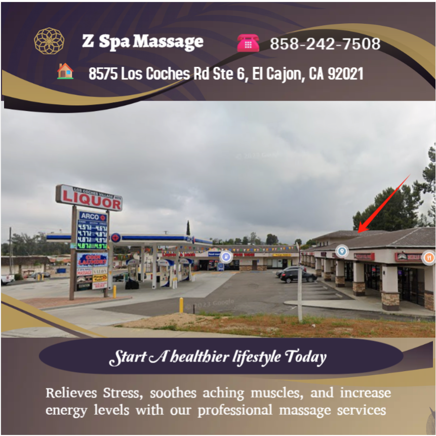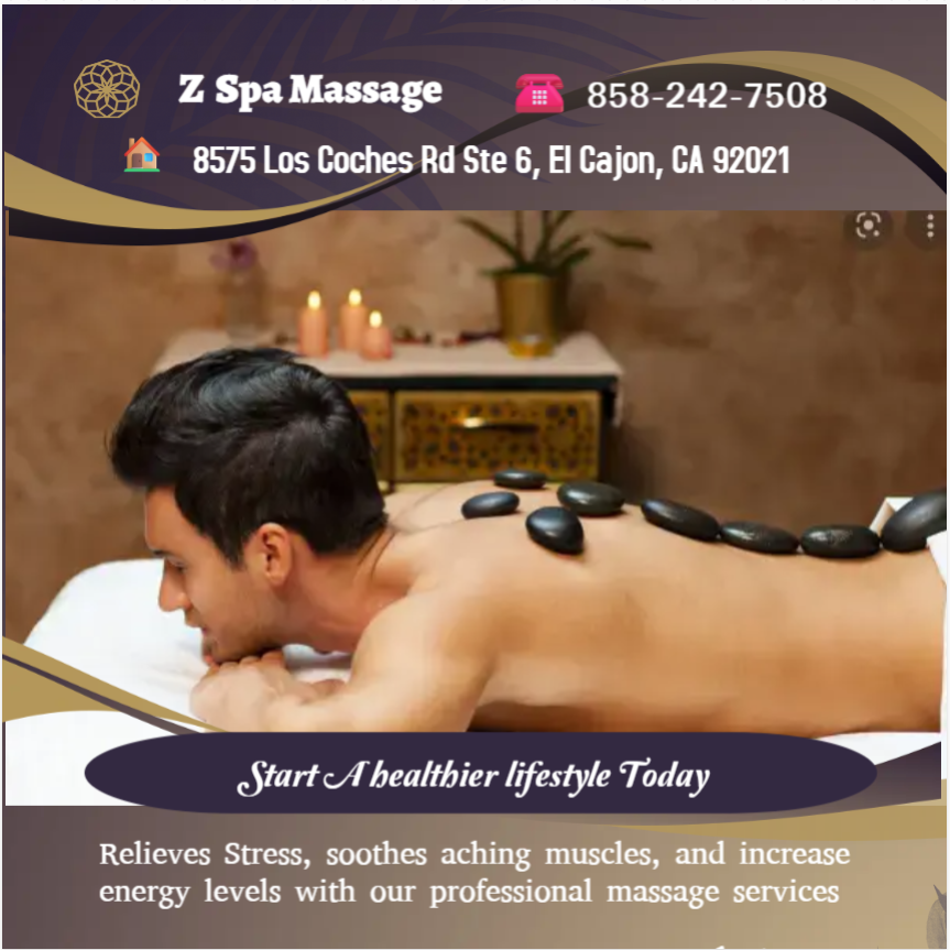 "Z Spa Massage in El Cajon, CA, offers a rejuvenating escape with their premium Asian massage services. Escape the hustle and bustle as you indulge in a relaxing full-body massage or invigorate your senses with a hot stone massage. Conveniently located for those searching 'massage near me' in El Cajon, Z Spa Massage is your go-to destination for a blissful spa experience.